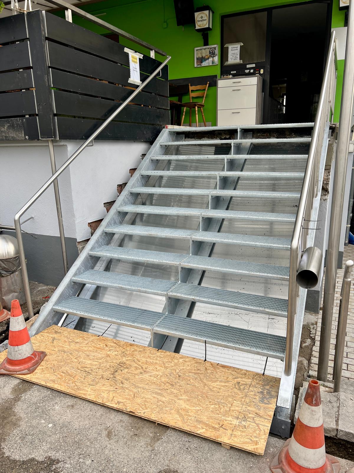 In einer beeindruckenden Gemeinschaftsaktion haben die fünf engagierte Vereinsmitglieder Harald Nees, Klaus Weber, Bobby Helmut Bower, Thomas Elsner und Manfred Nees die alte Waschbetontreppe zu unserer Vereinsgaststätte abgerissen und durch eine moderne Stahltreppe ersetzt. Mit einem bemerkenswerten Einsatz haben die Helfer in Eigenarbeit insgesamt 4,5 Tonnen Beton abgetragen und entsorgt.
