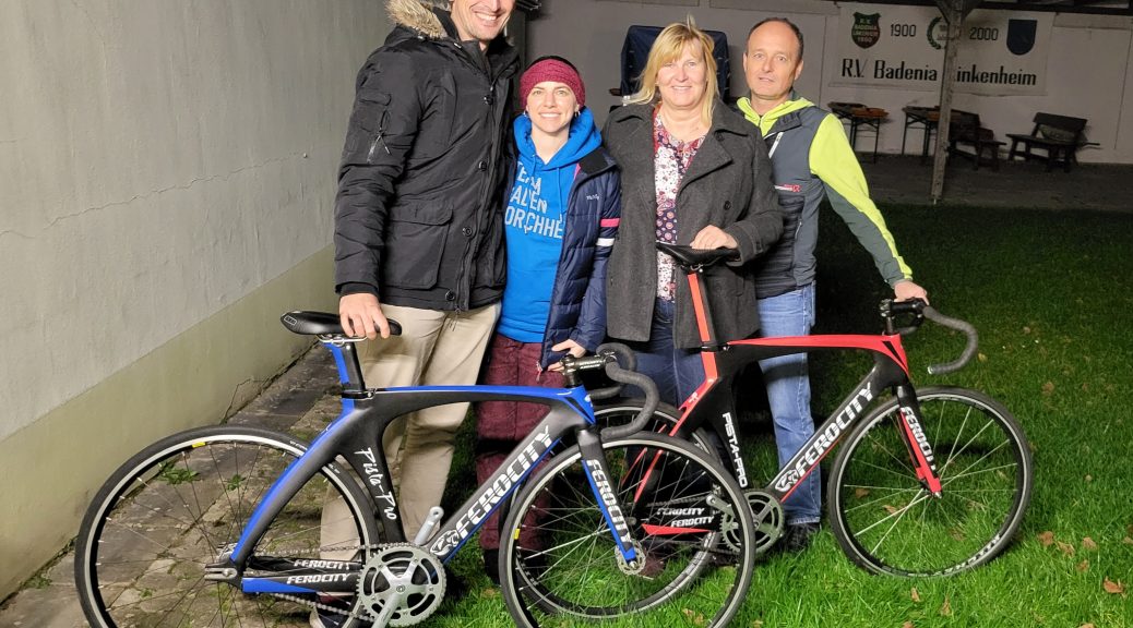 Im November durfte unser Radsportverein eine großzügige Sachspende in Form von zwei hochwertigen Bahnrädern inklusive Zubehör entgegennehmen. Die Übergabe fand auf unserer Radrennbahn statt und erfreute unserem Vorstand, das Trainerteam sowie die Nachwuchsfahrer sehr. Die Spender, Ronet und Andre Human, kommen selbst aus dem Radsport und haben auf unserer Radrennbahn schon die ein oder anderen Runden gedreht. Nachdem gesundheitliche Probleme das Bahnradfahren für sie unmöglich gemacht haben, möchten sie mit der Spende Ihrer Räder die Nachwuchsarbeit unterstützen.