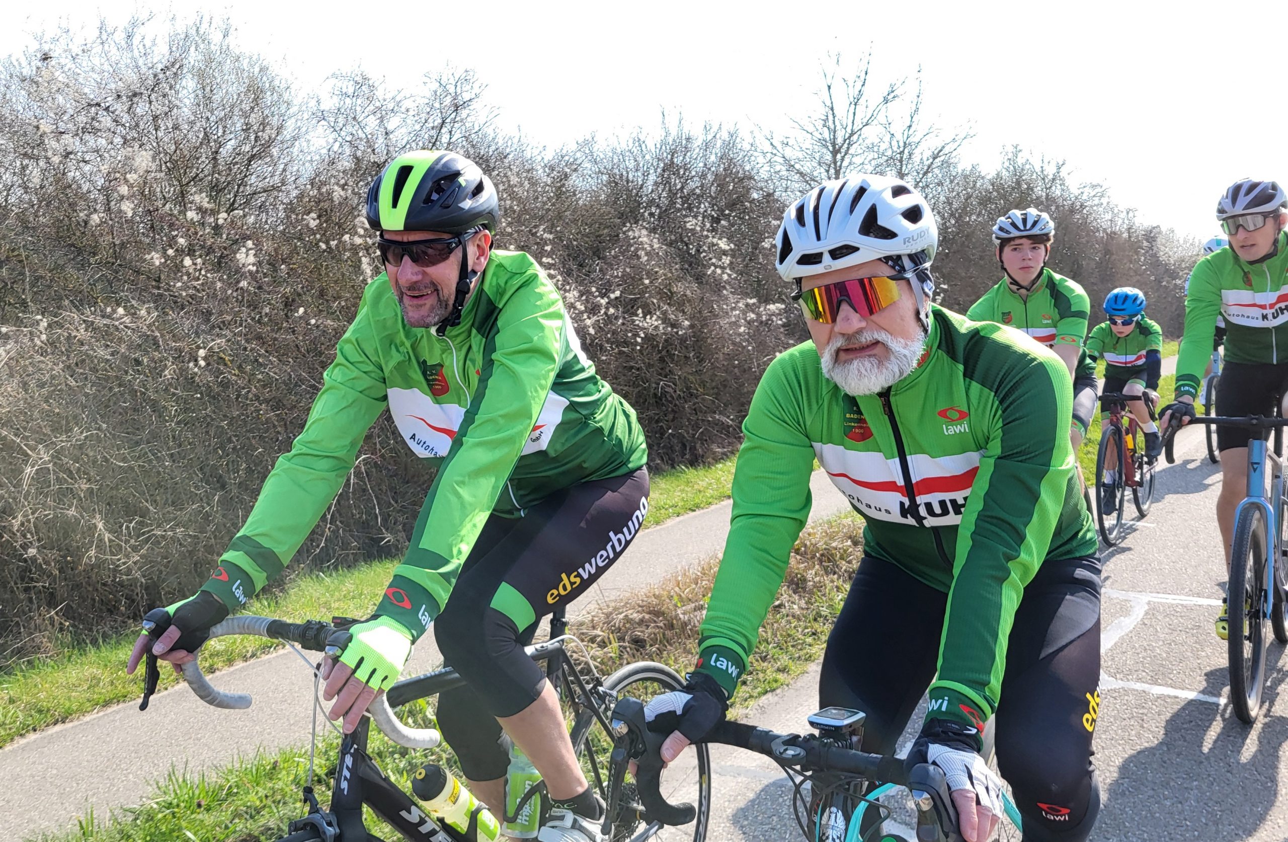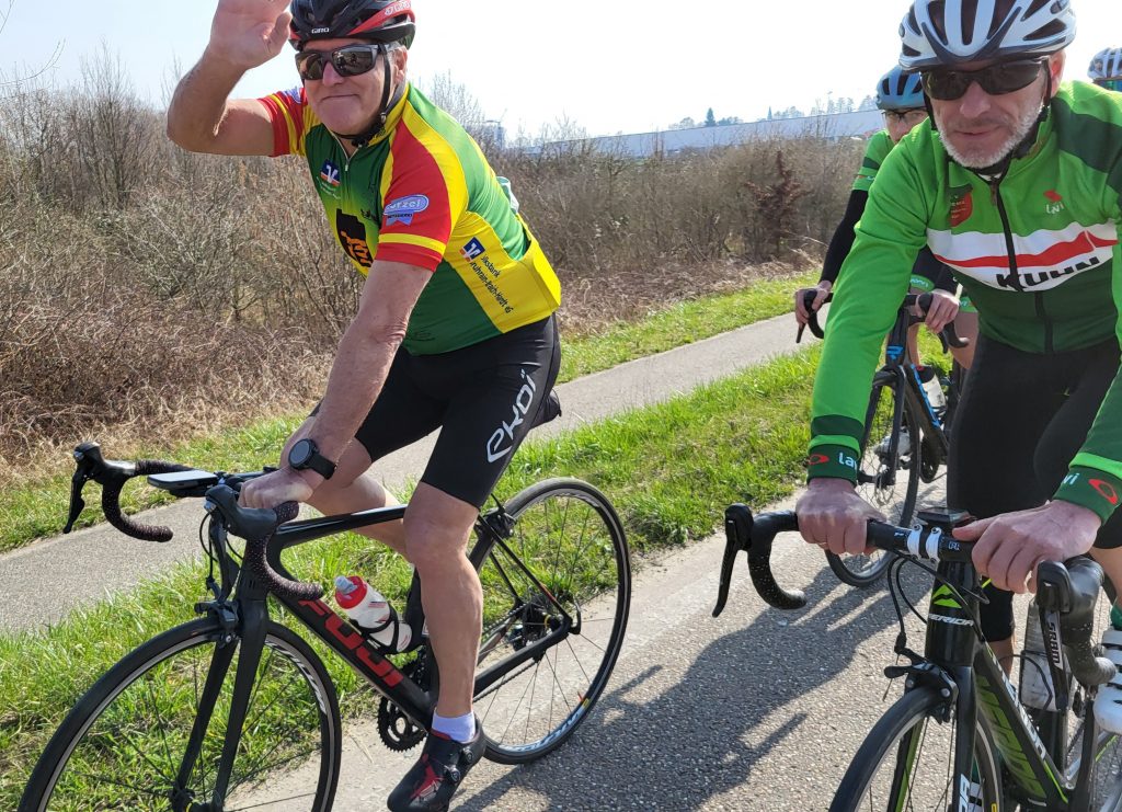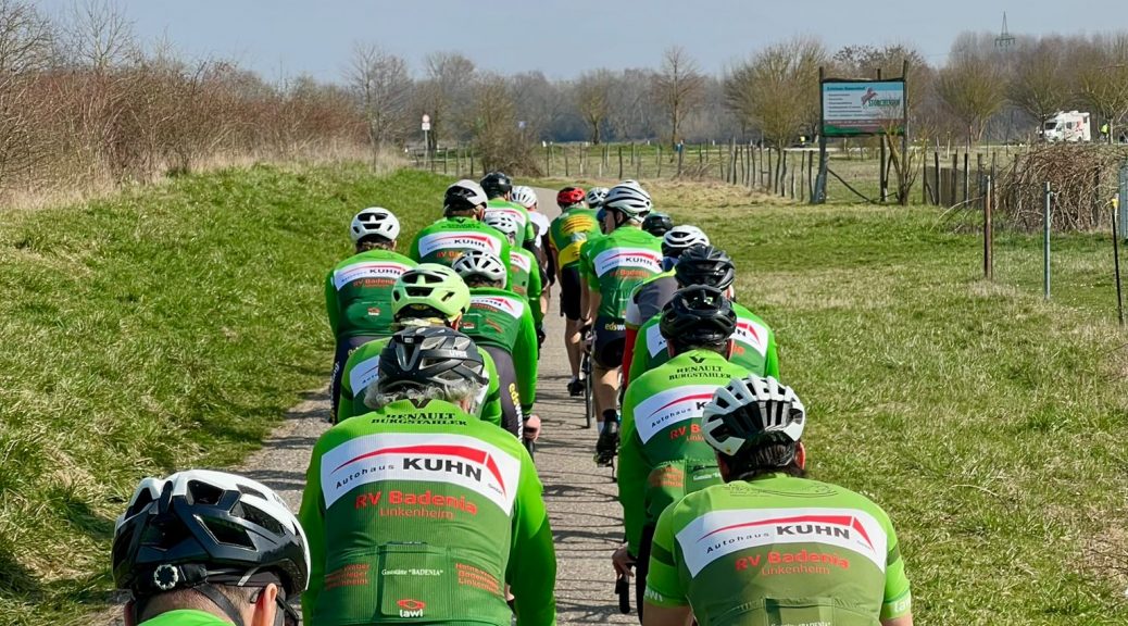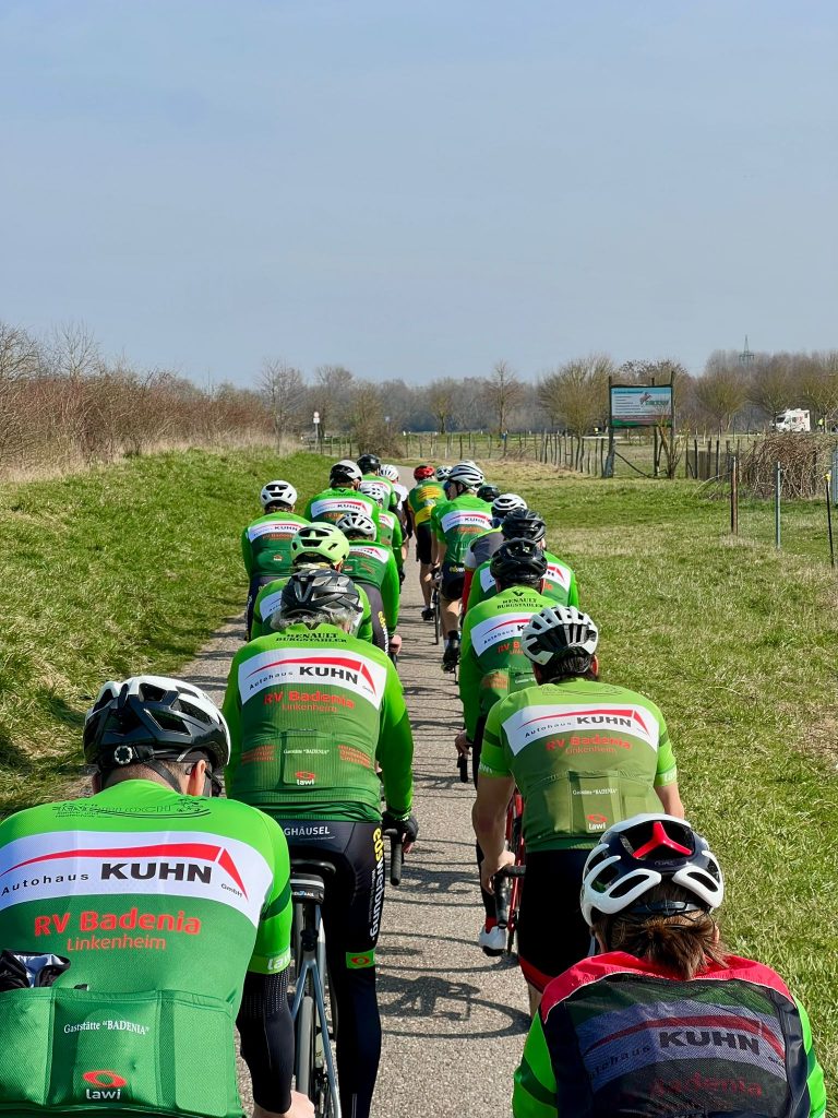 Es ging gemeinsam aus Linkenheim heraus Richtung Norden. Unterwegs trennten sich die Fahrer in zwei Gruppen. Die eine Gruppe fuhr etwas gemütlicher eine kleine Runde von 30 km, die Anderen fuhren etwas sportlicher die bewährte Runde von ca. 50 km über Oberhausen.