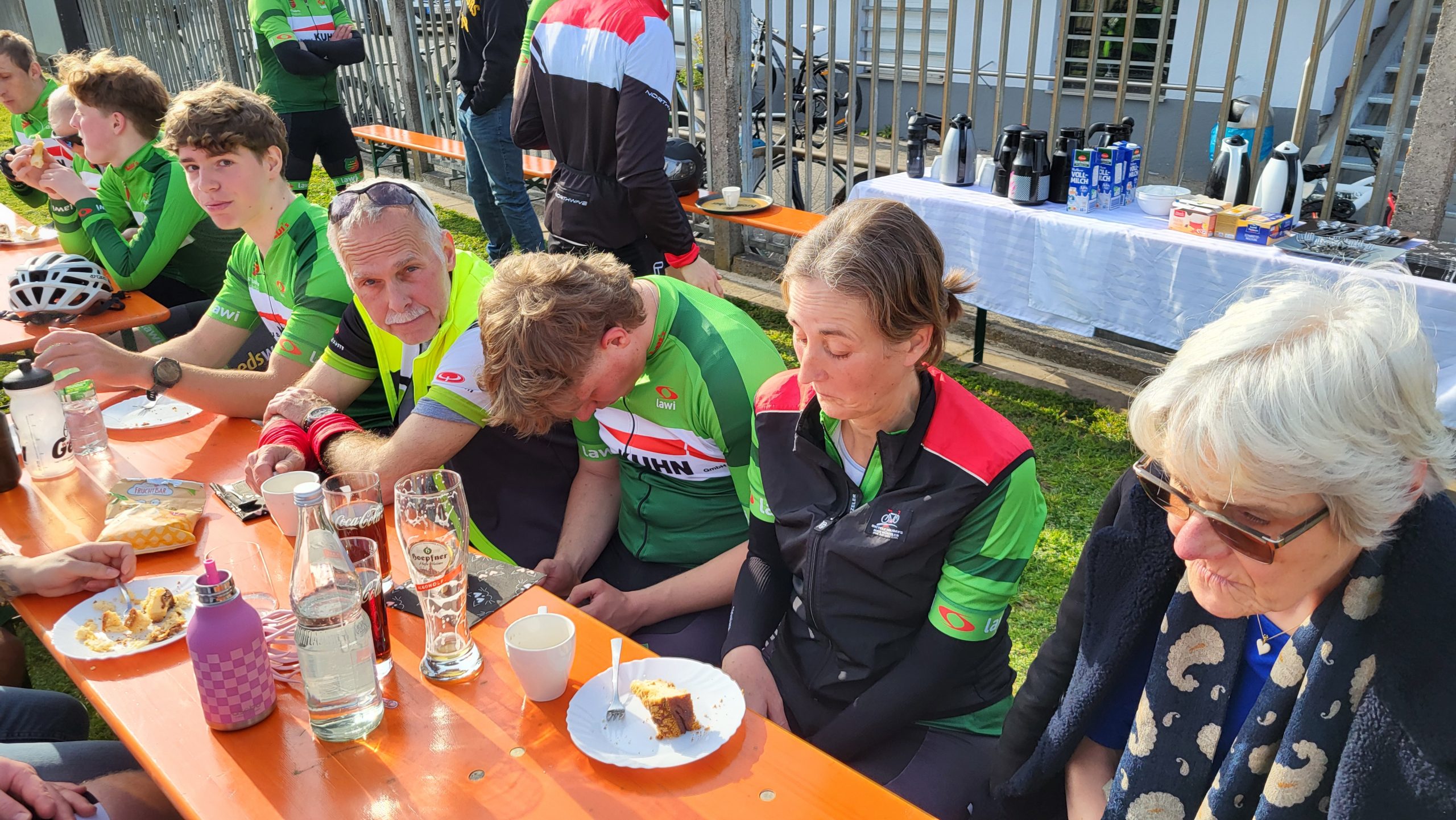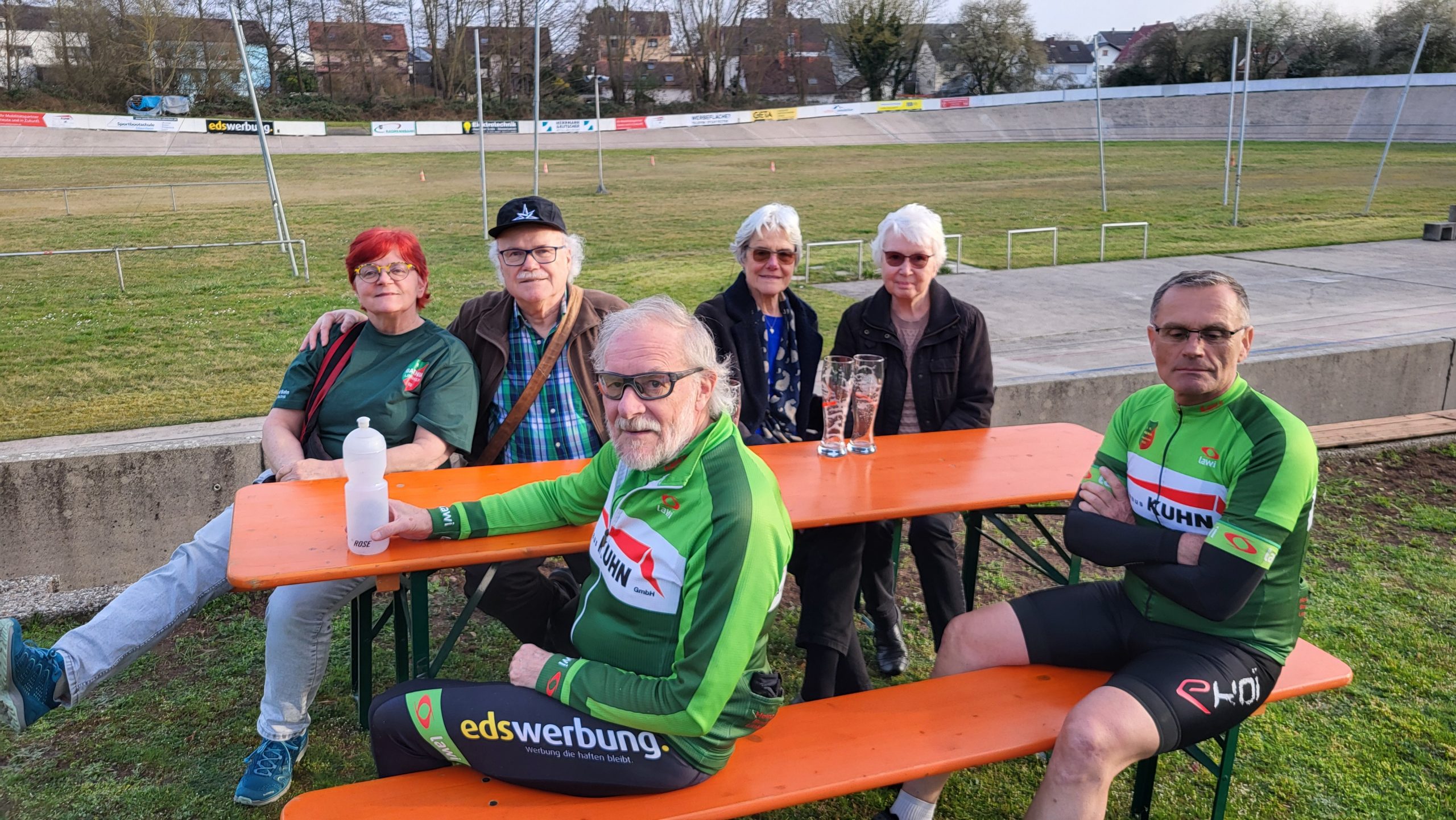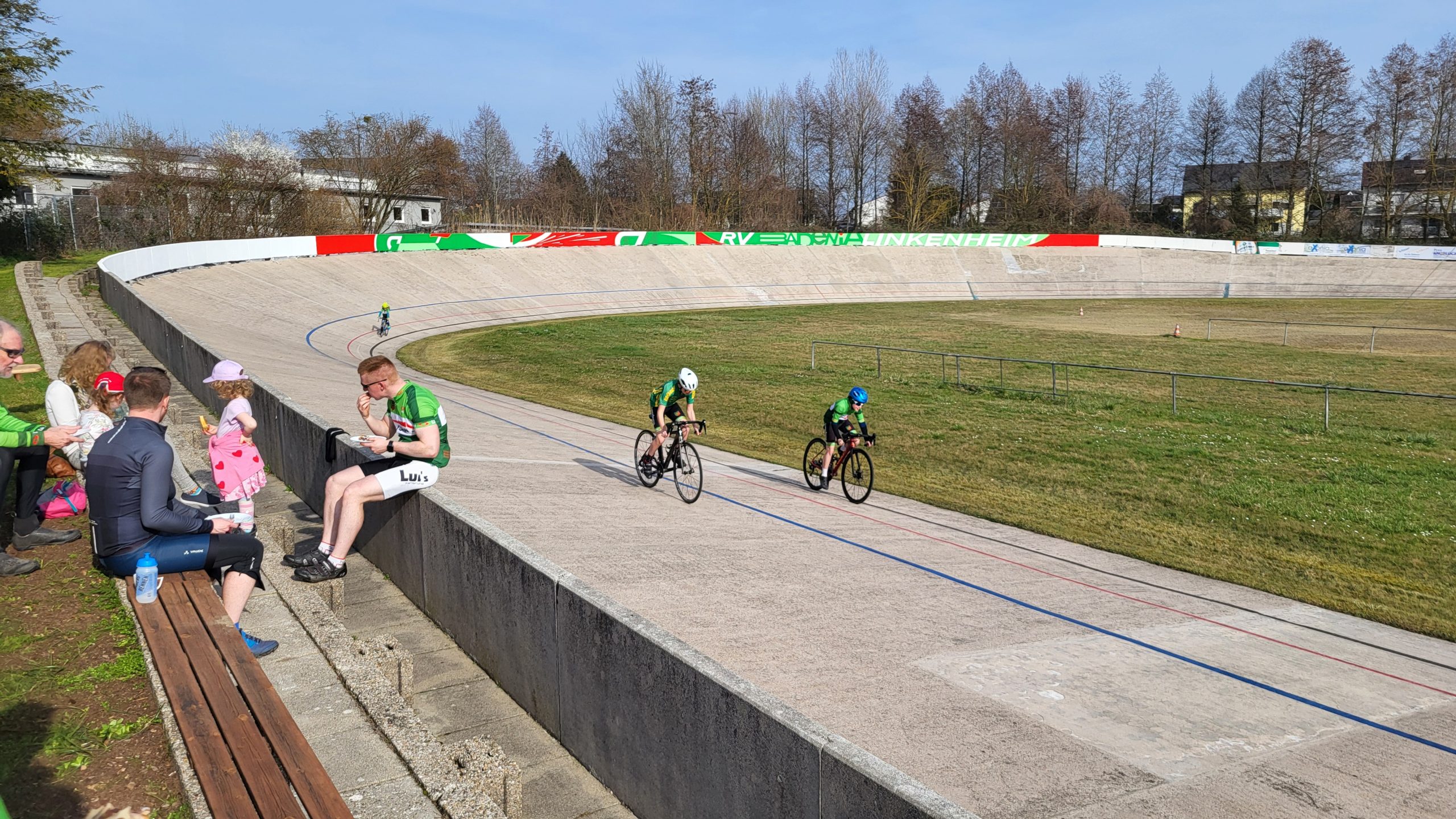 Im Anschluss traf man sich wieder auf der Radrennbahn zum gemütlichen Kaffee-Plausch, bei dem auch einige Vereinsmitglieder teilnahmen, die nicht mitradeln konnten. Einige Nachwuchsfahrer drehten dann noch einige Runden auf der Bahn.