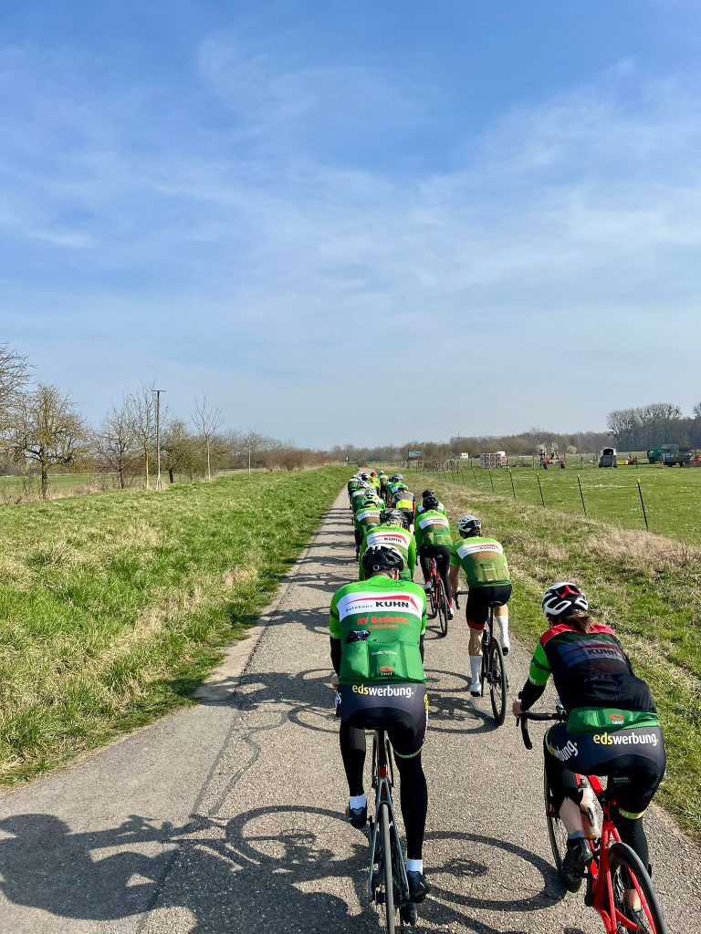 Wieder einmal hatte es der Wettergott gut mit uns gemeint und so starteten am Sonntag knapp 30 Fahrer zur ersten gemeinsamen Ausfahrt. Vom kleinen neunjährigen Anton über die Nachwuchsfahrer und ambitionierten Rennfahrer bis zu den RTF-Fahrern trafen sich vor der Radrennbahn, auch Gastfahrer waren mit dabei.